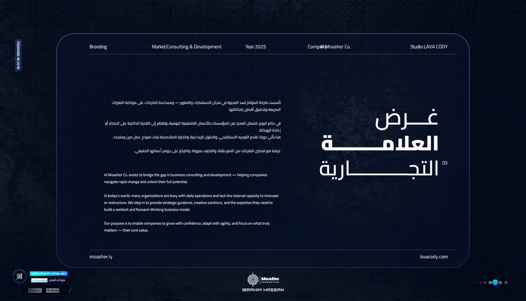 The Moasher website, designed and developed by Lava Cody, presents a modern and user-friendly visual identity that reflects its advanced technology and software services. The site offers a smooth and sophisticated browsing experience, making it easy for visitors to access the company’s diverse services and resources.